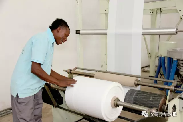 Uma trabalhadora angolana arruma os sacos plásticos produzidos.