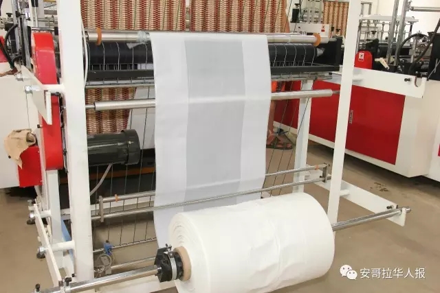 Um técnico chinês inspeciona os sacos plásticos concebidos na linha de produ??o.