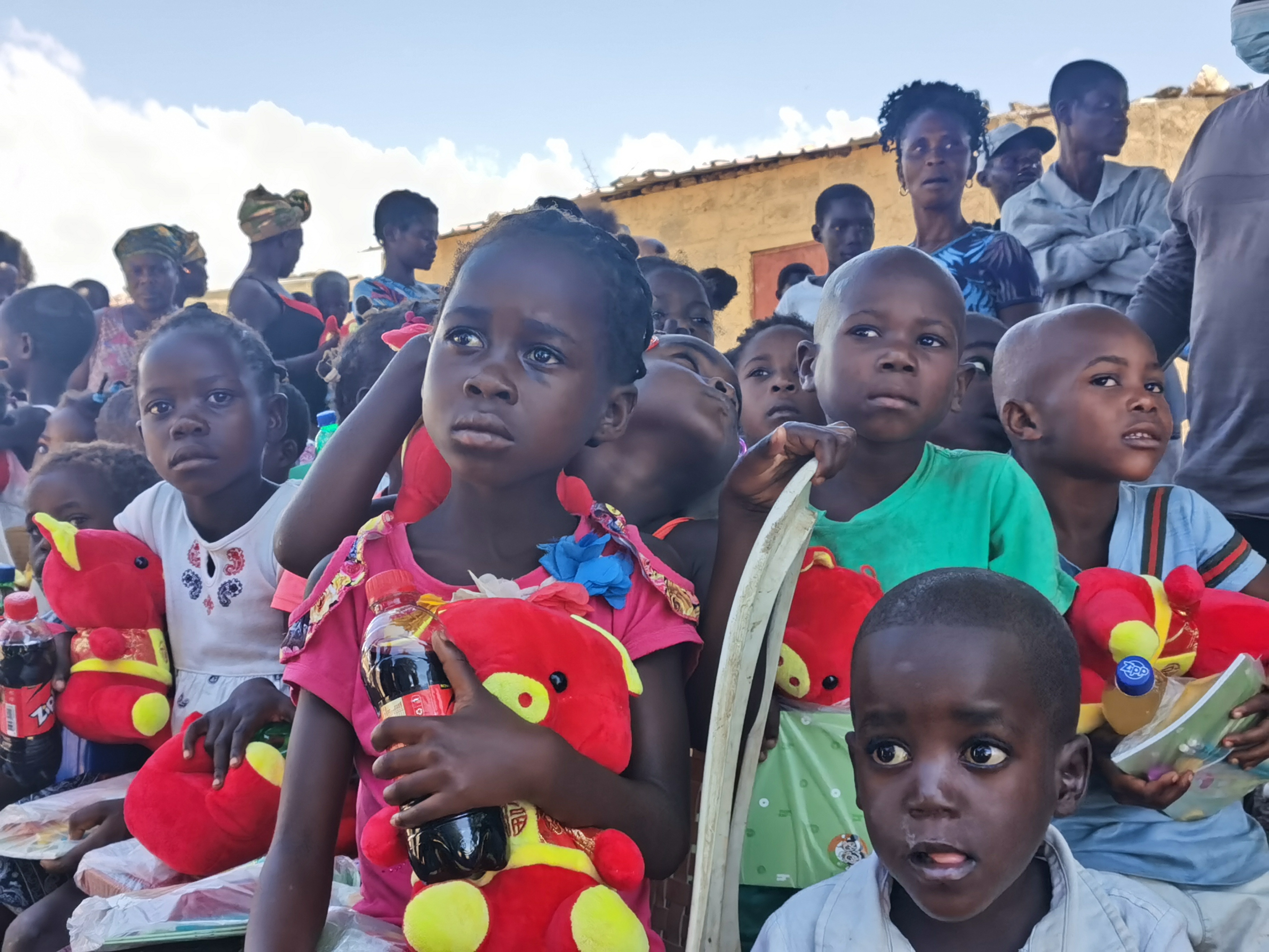No dia do evento, com a ajuda de professores locais, foram distribuídas prendas a cada crian?a. Os chefes das aldeias e os residentes ficaram muito gratos pela ajuda da empresa chinesa à popula??o local, e todos cantaram juntos mostrando simpatia e agradecimento.